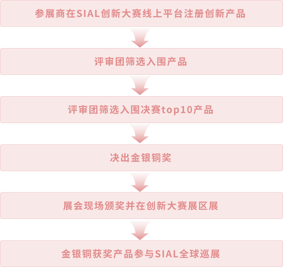 | SIAL創(chuàng)新大賽始創(chuàng)于1996年,被譽為全球食品屆“奧斯卡”,國際化標準賽制、全球食品制造商參賽和特邀國際專業(yè)評審團,使得SIAL創(chuàng)新大賽被業(yè)界譽為全球食品飲料創(chuàng)新發(fā)展的風向標。 作為SIAL全球系列展認證的國際性比賽,SIAL創(chuàng)新大賽榮獲獎項的產(chǎn)品將在上海、巴黎、蒙特利爾、多倫多、拉斯維加斯、新德里、雅加達等世界各地的主要城市巡回展出,并將獲得超高的國際關注度和來自全球食品行業(yè)從業(yè)者的認可。 | ||||||||||||||||||||||||||||||||||||||||