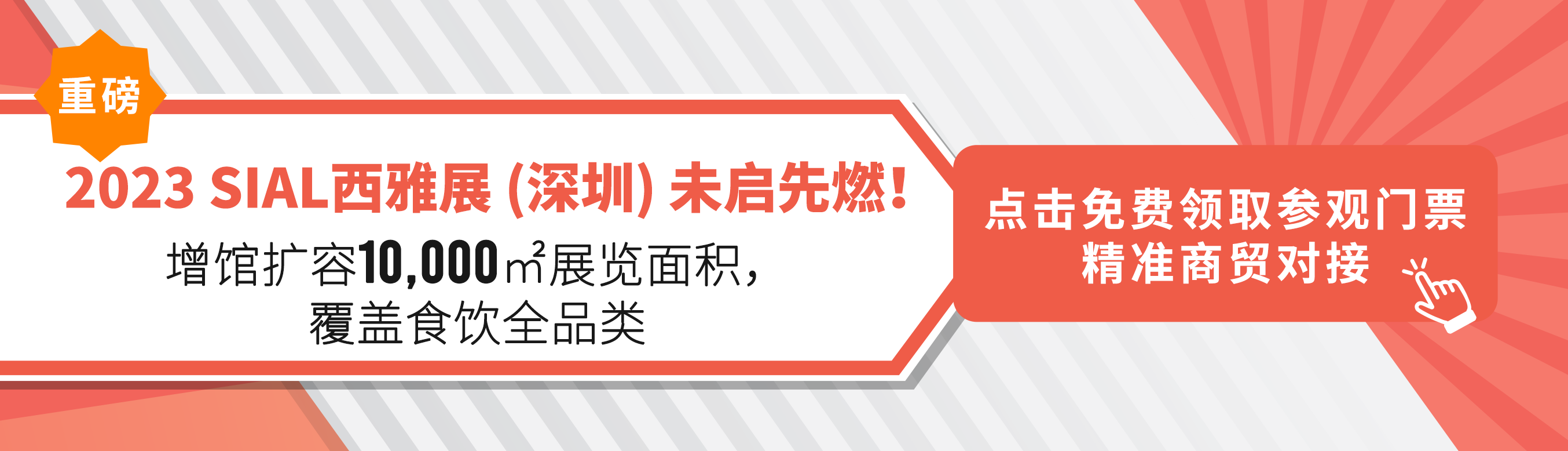 | 2023年8月28-30日,SIAL 西雅展 (深圳)將在深圳會(huì)展中心 (福田)盛大舉辦,經(jīng)過(guò)60年國(guó)際品牌沉淀,23年中國(guó)市場(chǎng)深耕,作為覆蓋全品類的華南國(guó)際食飲交易展,為滿足市場(chǎng)日益蓬勃的成交需求,SIAL西雅展 (深圳)將在原有規(guī)模上增設(shè)10,000平米的展覽面積,展覽面積將達(dá)45,000平米,向行業(yè)和展商提供更佳的服務(wù)場(chǎng)景。 | |||