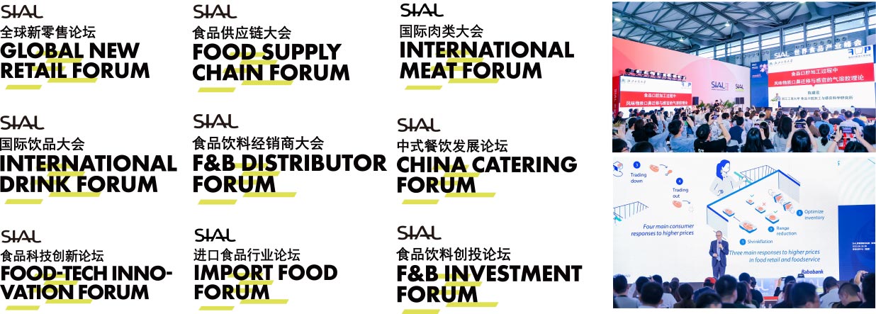 | SIAL創(chuàng)新大賽 / 引領(lǐng)食飲創(chuàng)新風(fēng)尚 SIAL 中國(guó)茶飲調(diào)配師大賽 / 健康茶飲,樂(lè)享生活 美食廚房LA Cuisine中國(guó)國(guó)際頂級(jí)廚師邀請(qǐng)賽 / 匯集全球頂尖大廚烹飪創(chuàng)意 SIAL中餐廳 / 中國(guó)風(fēng)味蕾新體驗(yàn) SIAL航旅餐錦標(biāo)賽 / 引領(lǐng)航旅餐行業(yè)的最新發(fā)展趨勢(shì) SIAL 零食節(jié) / 集合新興零食消費(fèi)場(chǎng)景 SIAL CUP 咖啡師全能賽 / 領(lǐng)略國(guó)內(nèi)專業(yè)咖啡師風(fēng)采活力 鮮生活·名優(yōu)水產(chǎn)食材推介 | |||