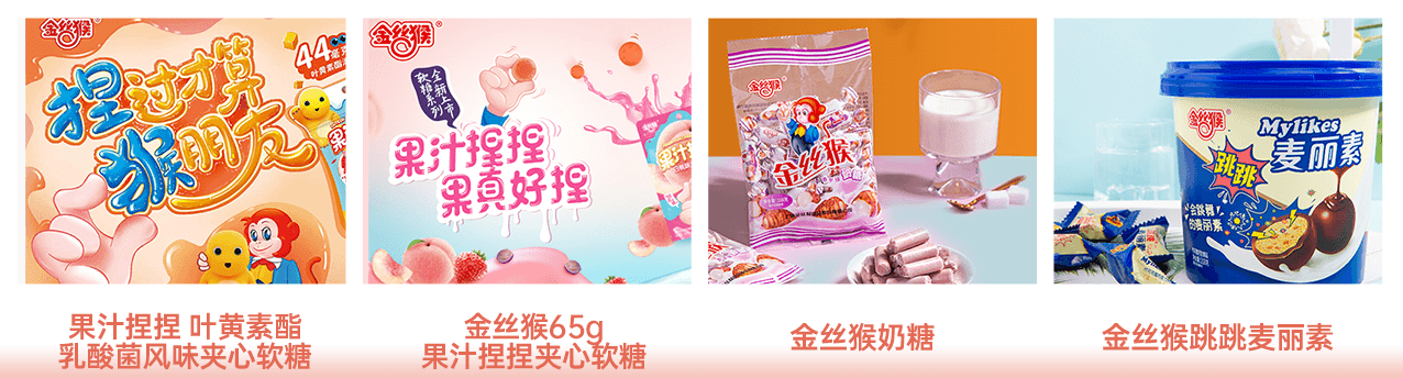 | 上海金絲猴食品股份有限公司是創(chuàng)立于1992年的中國糖巧休閑食品企業(yè)。金絲猴食品倡導“甜蜜文化”,致力于為消費者提供高品質、創(chuàng)新的休閑食品。旗下主要有糖果系列、巧克力系列、烘焙系列、鹵制品系列、喜鋪系列。