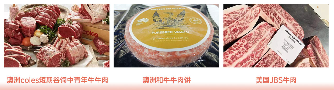 | 美國JBS公司牛肉產(chǎn)品;澳洲BINDAREE牛肉產(chǎn)品 。