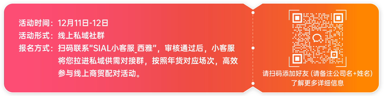 2023 SIAL西雅展秋冬食飲采購節吸引2000+家食飲上下游企業、數萬專業買家共同參與,10+私域社群聯動推介熱門年貨產品,專業買家線上集中選品,與意向采購展商高效建立商貿合作鏈接。