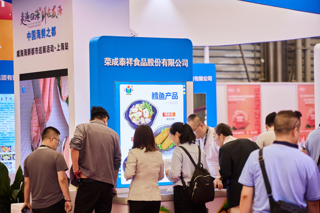 5月28日,由威海市海洋發展局主辦,中國水產流通與加工協會承辦的威海海鮮都市巡展活動·上海站,與被譽為“世界三大食品展之一”的2024 SIAL西雅國際食品展同時拉開帷幕。威海市海洋發展局攜山東好當家海洋發展有限公司、榮成泰祥食品股份有限公司、威海市宇王集團有限公司、山東海之寶海洋科技有限公司、山東燈塔水母海洋科技有限公司、威海金鵬水產品有限公司、威海旺和食品科技有限公司、威海藻領鮮海洋食品有限公司八大實力水產企業集體亮相上海新國際博覽中心,與來自75個國家及地區的5000余家參展商,共赴全球食品飲料行業盛會,為國內外采購商提供來自北緯37°深海的饋贈。