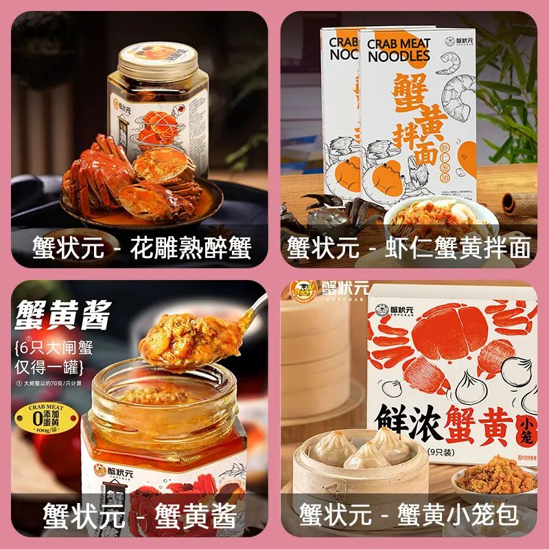 蟹狀元零售事業深耕蟹類產品,研發出面點系列、醉系列、蟹粉系列等多品類創新商品,入駐世紀聯華、永輝、大潤發、家家悅直營、盒馬云超等多個平臺,多渠道打造企業主營產品核心競爭力。