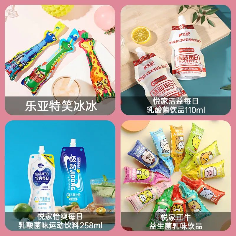 樂亞特系列兒童食品、專注于為廣大兒童及青少年人群提供童趣、美味的休閑飲品。悅家系列乳制品和休閑飲料,產品堅持新、奇、特、優,同時選用小巧便攜、輕型化的包裝形式,適應消費者對便捷零食的需求。