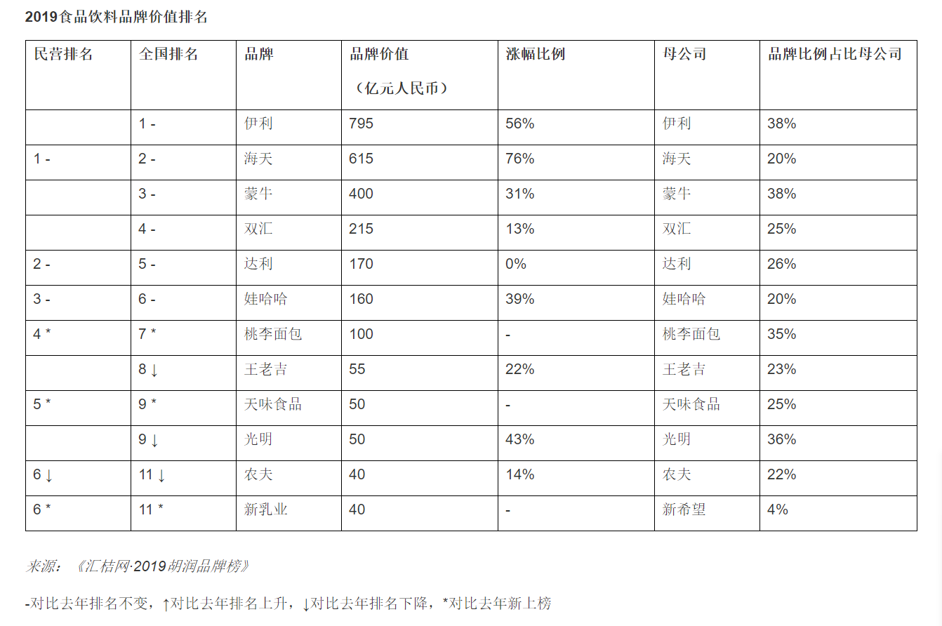 12家食企上榜胡潤2019中國品牌價值榜
