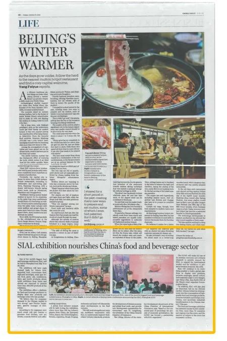 China Daily報紙對SIAL 2022 國際食品展新聞發布會進行了大版面的報道