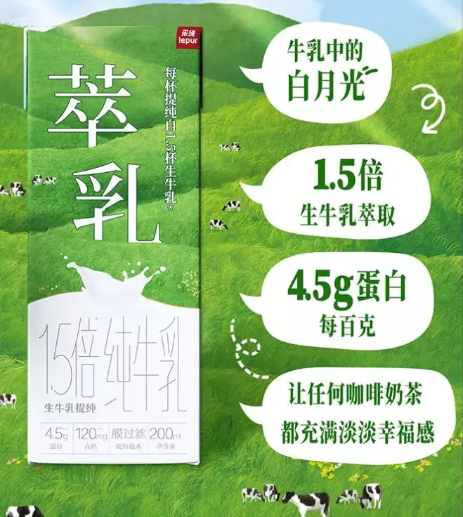據介紹,萃乳由1.5倍生牛乳萃取,采用的是膜過濾提純技術,濃縮牛奶中的蛋白和鈣,優(yōu)化掉多余的脂肪和鈉。每100g含有4.5g的蛋白,可搭配奶茶咖啡飲用。