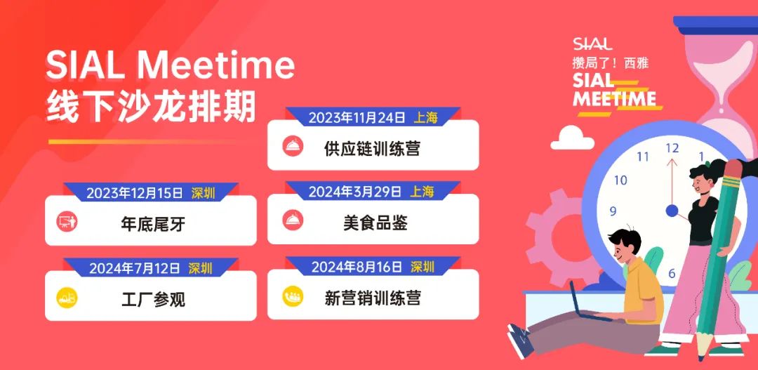 【SIAL Meetime】是我們面向食品行業(yè)的全新主題系列沙龍活動,每一期以不同形式主題活動召集食品、飲料、餐飲行業(yè)從業(yè)者參與,在輕松愉悅的氛圍中獲取行業(yè)知識,結(jié)交新的伙伴,開拓更多潛在商機(jī)。