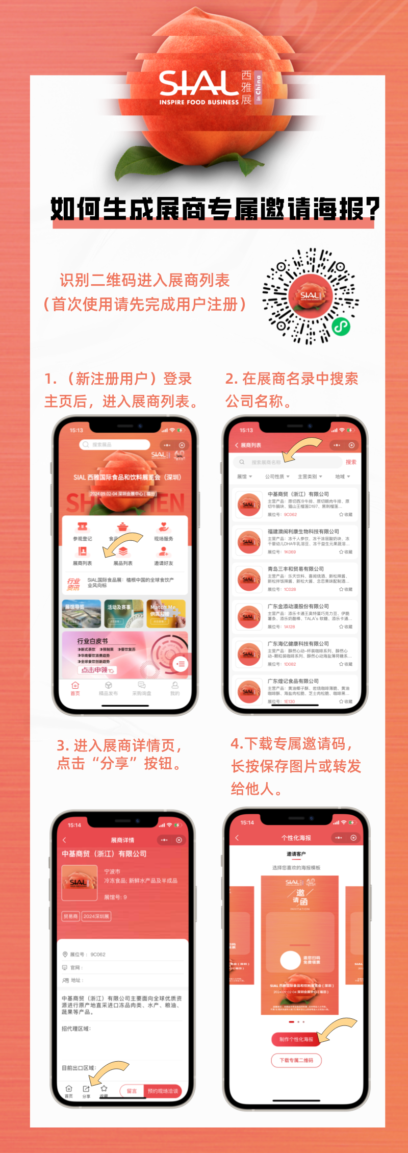 尊敬的每位展商和專業觀眾們,為了給大家帶來更豐富、更有價值的展會體驗,主辦方精心策劃了SIAL在線小程序預登記“您邀請,我送禮!展前預熱活動”,誠邀您的積極參與!