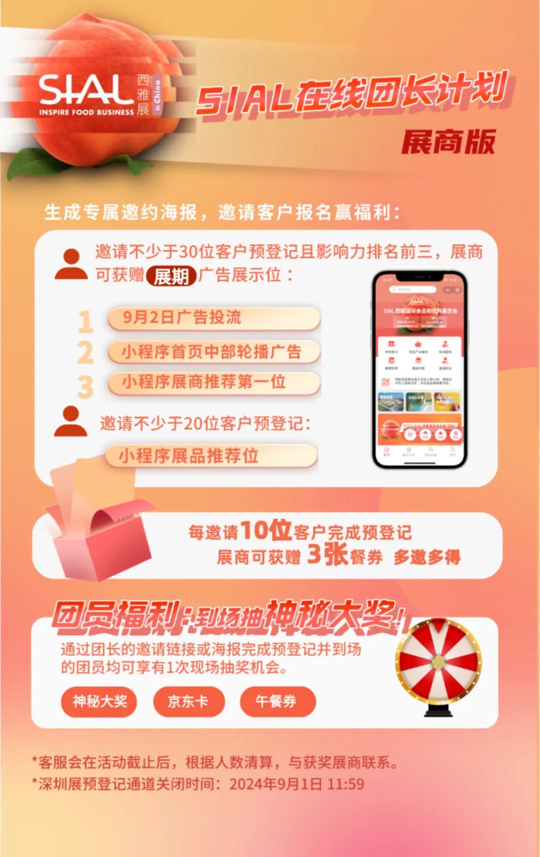 如果您不是展商也不用擔心,作為專業觀眾的您可以參加SIAL 在線團長計劃,組團邀約享好禮!掃碼進入小程序頁面后可以直接點擊【邀請好友】