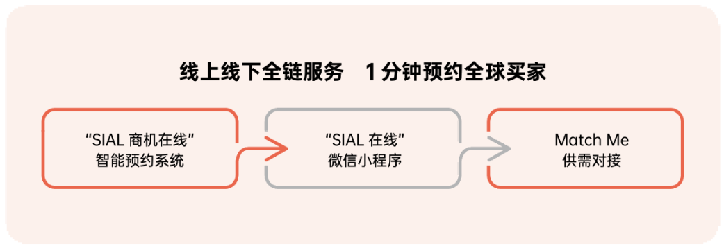 SIAL 西雅展通過(guò)一系列精準(zhǔn)高效的商貿(mào)服務(wù),幫助展商快速找到目標(biāo)買(mǎi)家,推動(dòng)業(yè)務(wù)快速發(fā)展,如通過(guò)SIAL在線(xiàn)小程序全鏈服務(wù),展商只需1分鐘即可預(yù)約全球買(mǎi)家,快速建立商貿(mào)聯(lián)系。
