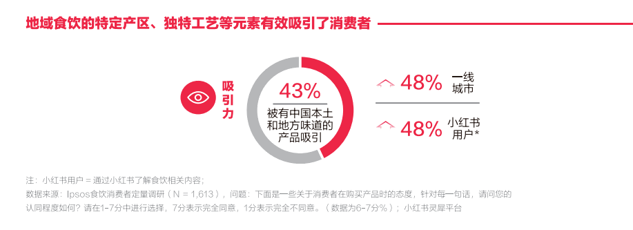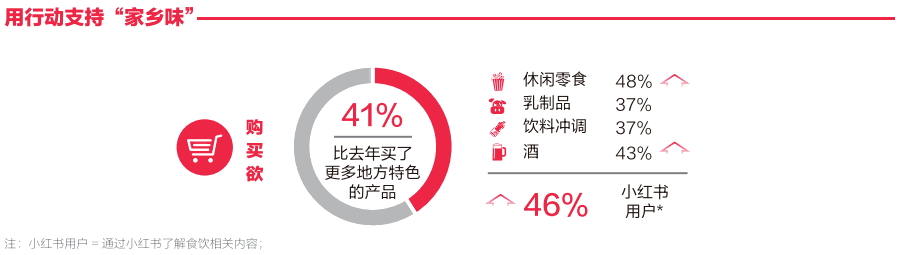 消費者不僅被地域產品的獨特性吸引,還正在用實際行動支持地域特色,購買地方特色產品的頻率明顯提升。41%的消費者表示自己在去年買了更多地方特色的產品,且小紅書用戶更偏好購買這些地方特色產品。